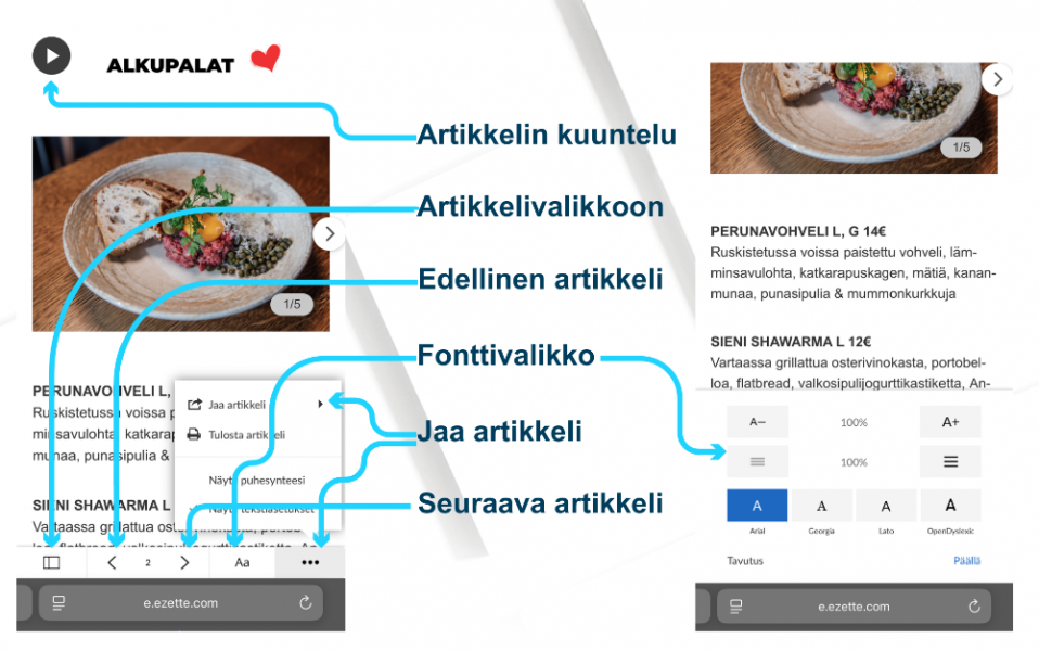 - Monimediallinen julkaisu, jota voidaan tarkastella eri laitteilla (puhelin, tabletti, tietokone), rikastaa videoilla, äänellä ja linkeillä ja tietenkin julkaista paperittomasti – tukien sekä ravintolan ympäristötavoitteita että hygieenisyyttä