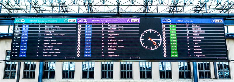 Uuden näytöt värit ovat eloisat ja kirkkaat ja se kestää erinomaisesti vilkkaan liikennekeskuksen vaativia ulko-olosuhteita. Lisäksi se tukee saumattomasti Fintrafficin matkustajainformaatiojärjestelmää, mikä takaa tietojen päivittymisen reaaliajassa.